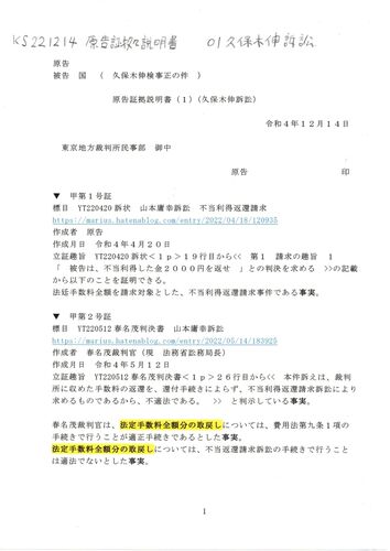 画像版 KS 221214 証拠説明書の改訂版 久木元伸訴訟 #久木元伸検事正 告訴状を受理しろ 作為給付請求事件 #H191019国保税詐欺 春名茂被疑者 高橋努訴訟=>山本庸幸訴訟=>春名茂判決書=>久木元伸検事正に告訴状提出=>告訴状不受理=>久木元伸訴訟 Ⓢ Y…