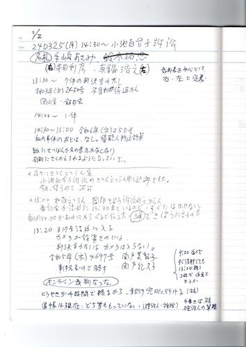 画像版 KY要録 240325 控訴審第1回口頭弁論メモ 小池百合子訴訟 弁論終結 判決言渡し6月5日13時 東京高裁 東京高等裁判所令和6年(ネ)第255号 虚偽有印公文書作成・同文書行使の違法を原因とする慰謝料請求控訴事件 手嶋あさみ裁判官 寺田利彦裁判…