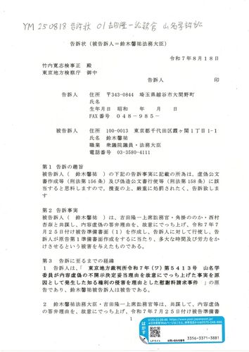 テキスト版 YM 250818 告訴状 吉田隆一訟務官 山名学訴訟 被告訴人=鈴木馨祐法務大臣 吉田隆一上席訟務官 等 Ⓢ YM 250725 被告準備書面(1) 中野晴行裁判官 山名学訴訟 https://ameblo.jp/bml4557/entry-12920908700.html Ⓢ 画像版 YM 250818 告訴状 吉田…