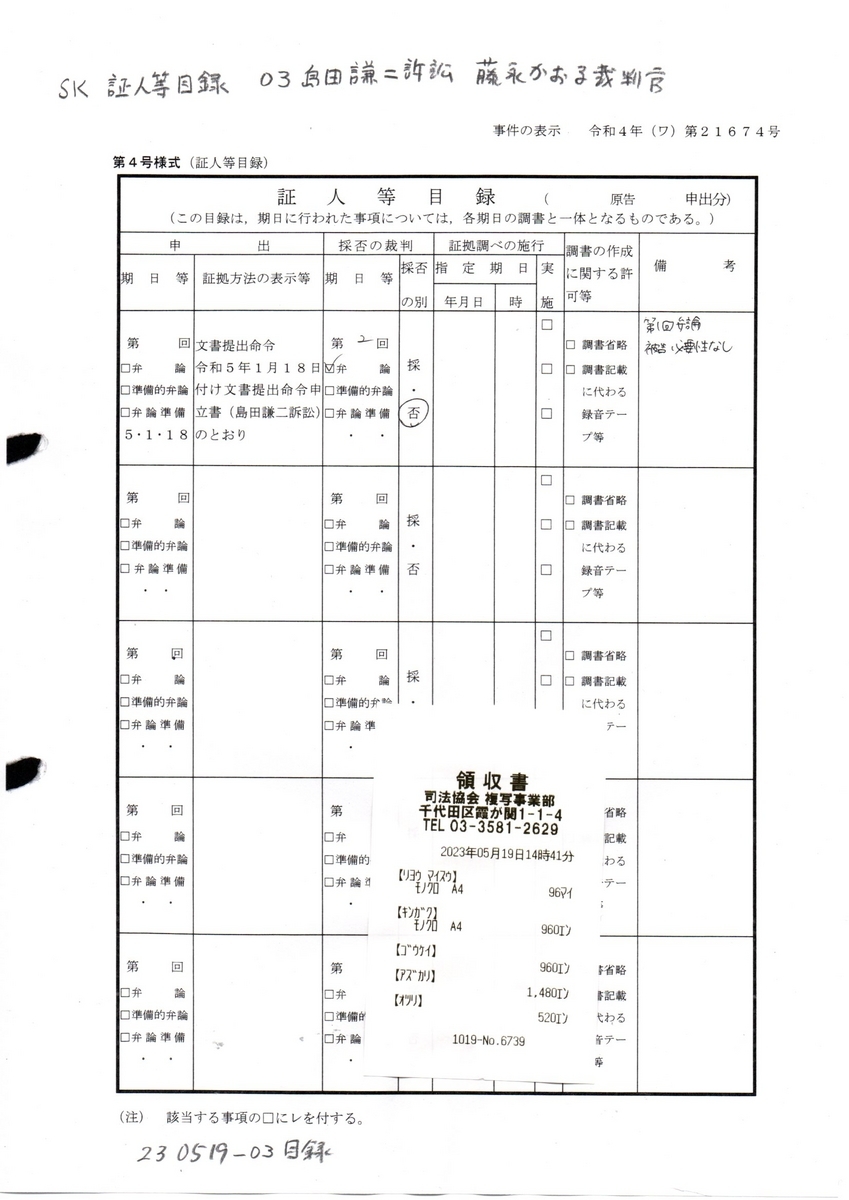 3 SK 証人等目録 島田謙二訴訟 藤永かおる裁判官