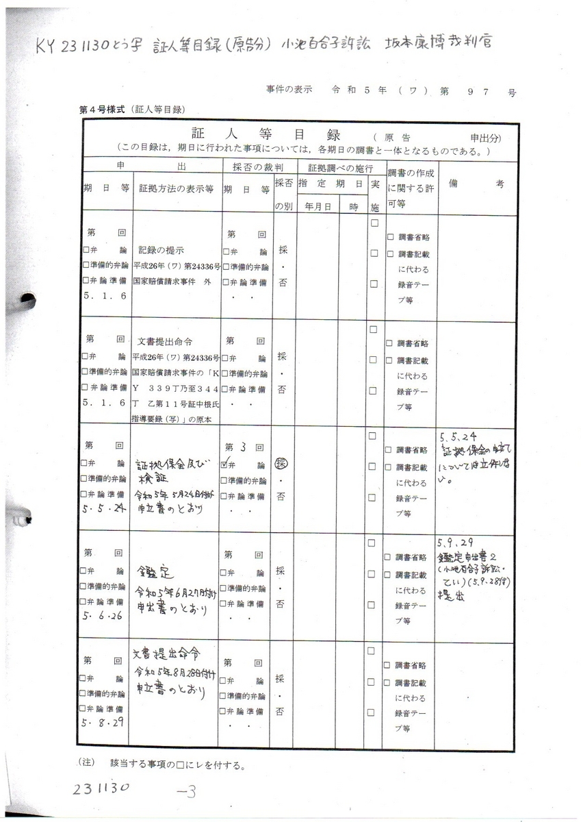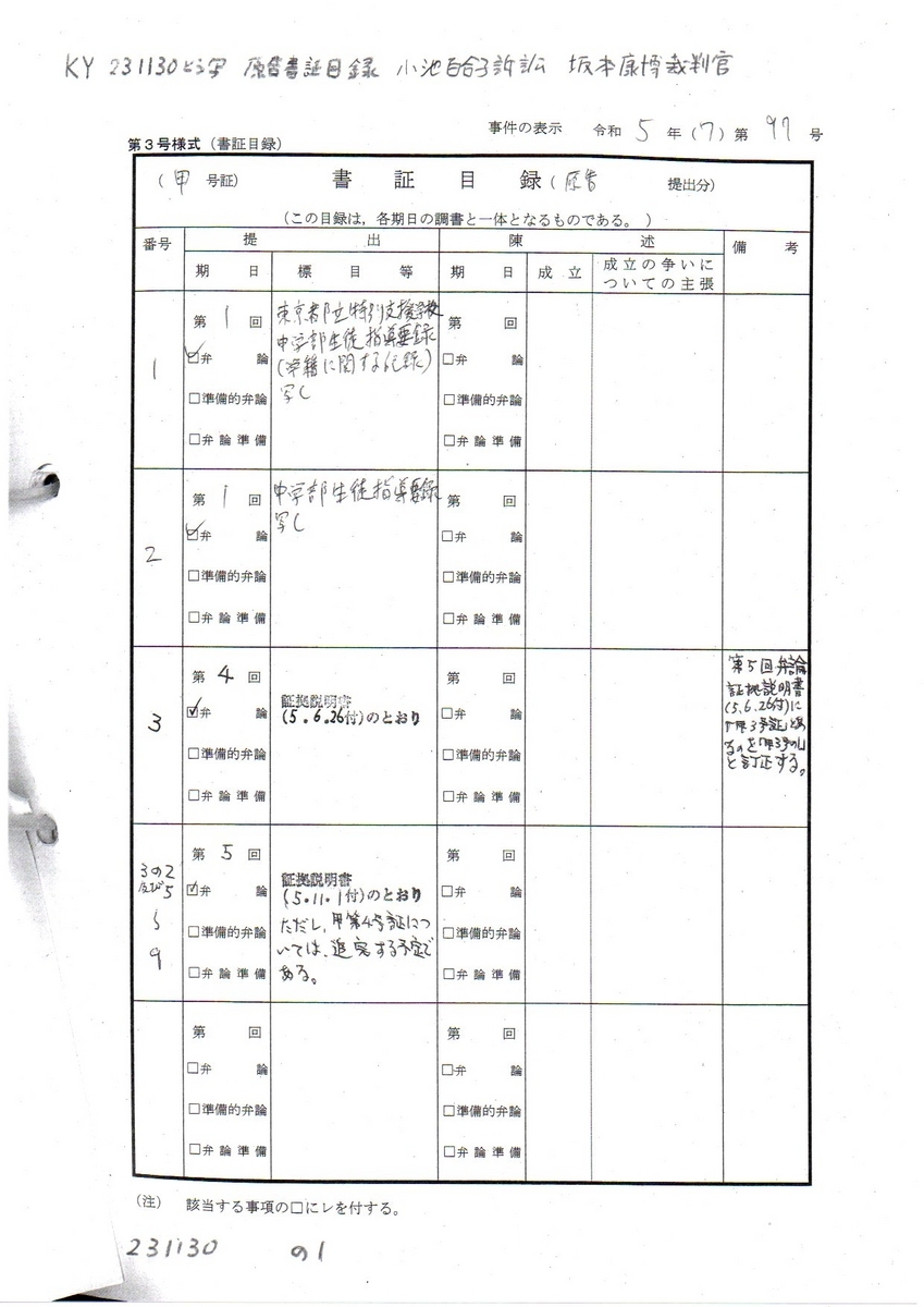 画像版 KY 231130謄写 書証目録 小池百合子訴訟 坂本康博裁判官