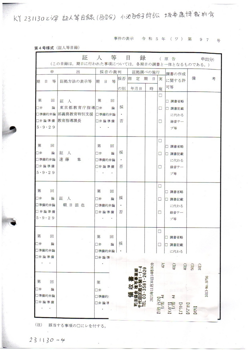 4 KY 231130謄写 証人等目録(原告分) 小池百合子訴訟