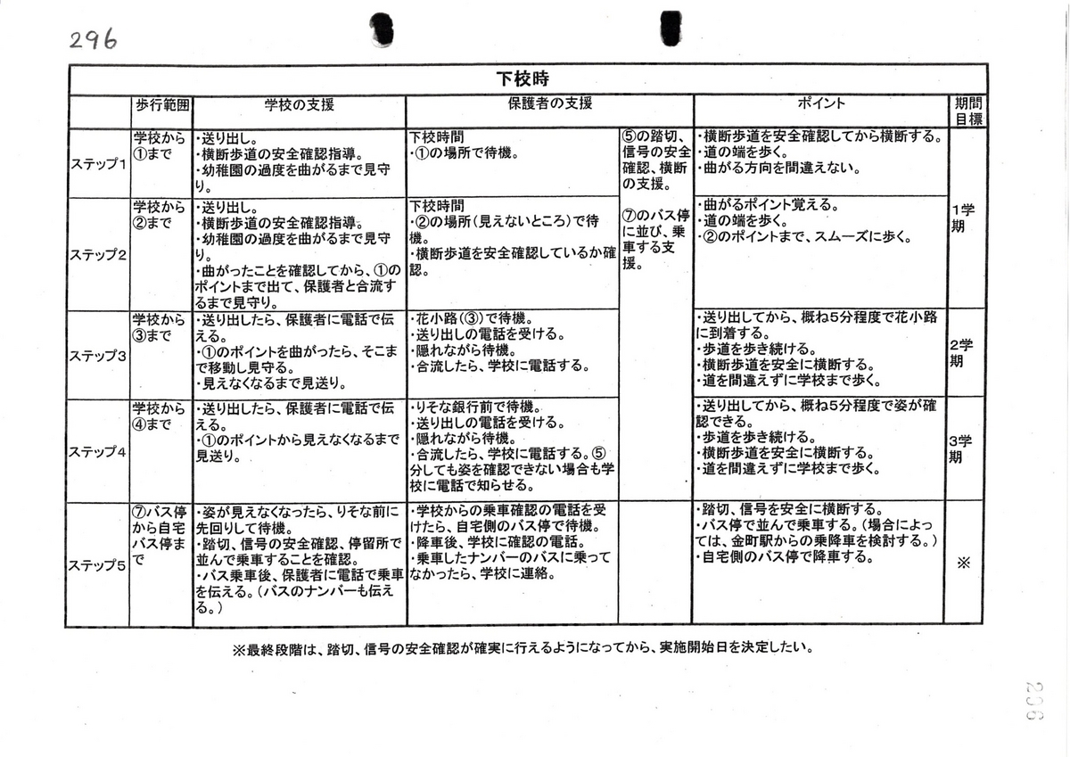 KY 296丁 H270324提出日 葛岡裕訴訟乙第4号証=中学部一人通学指導計画書・下校時( 中村真理主幹作成 )