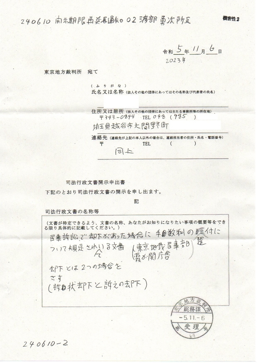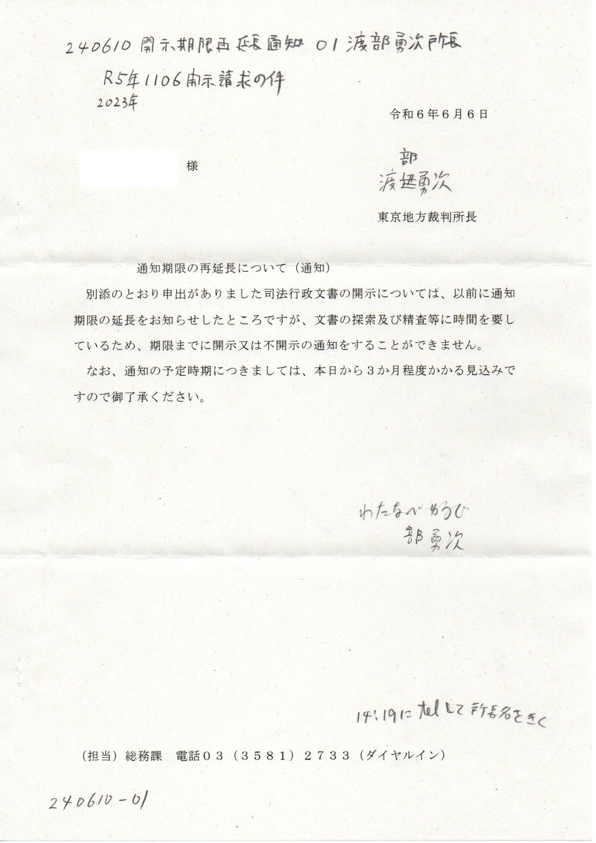 画像版 TS 240606 開示期限再延長通知 231106請求 渡部勇次所長