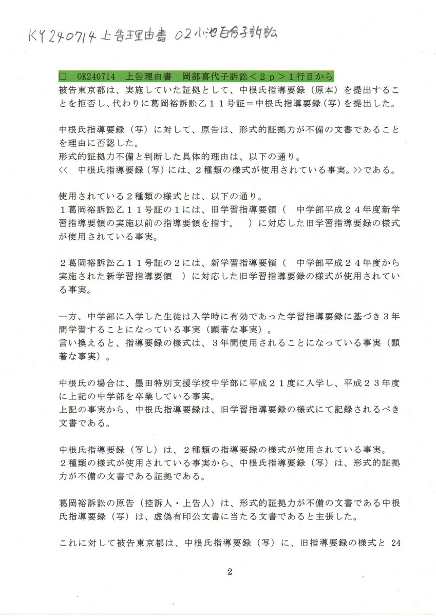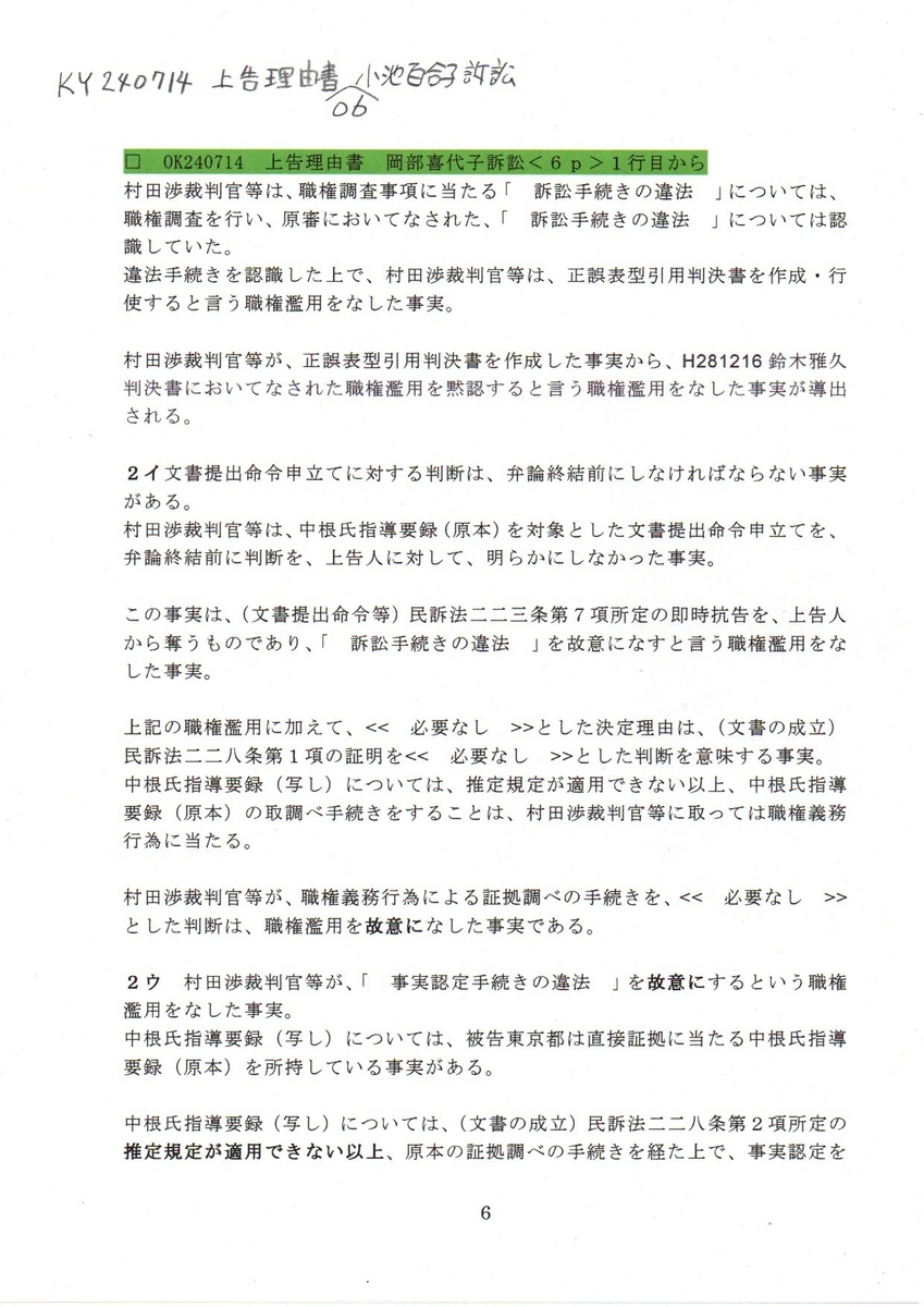 □ OK240714 上告理由書 岡部喜代子訴訟<2p>1行目から