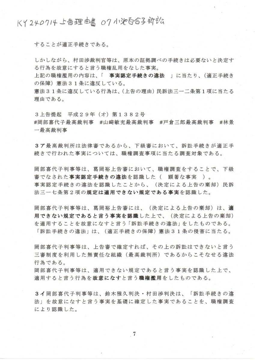 □ OK240714 上告理由書 岡部喜代子訴訟<12p>1行目から