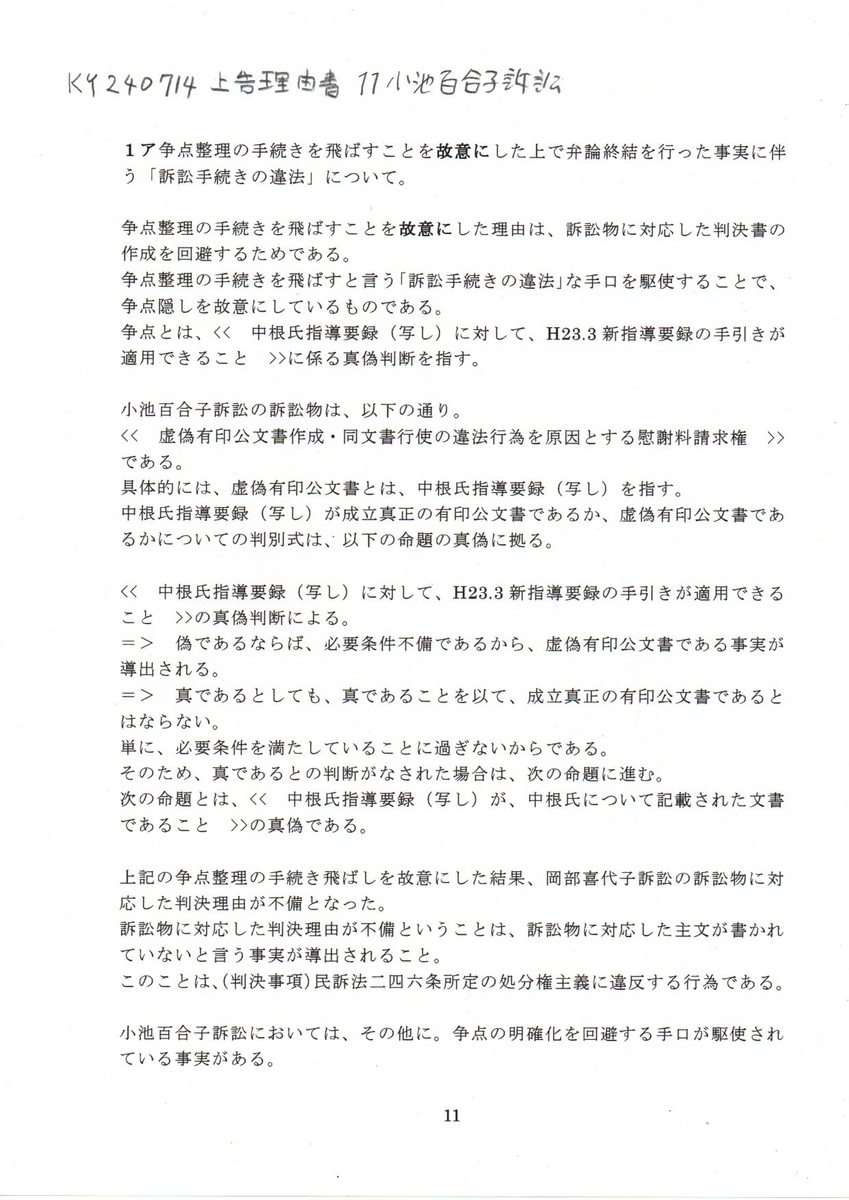 11KY要録 240714上告状理由書 11小池百合子訴訟