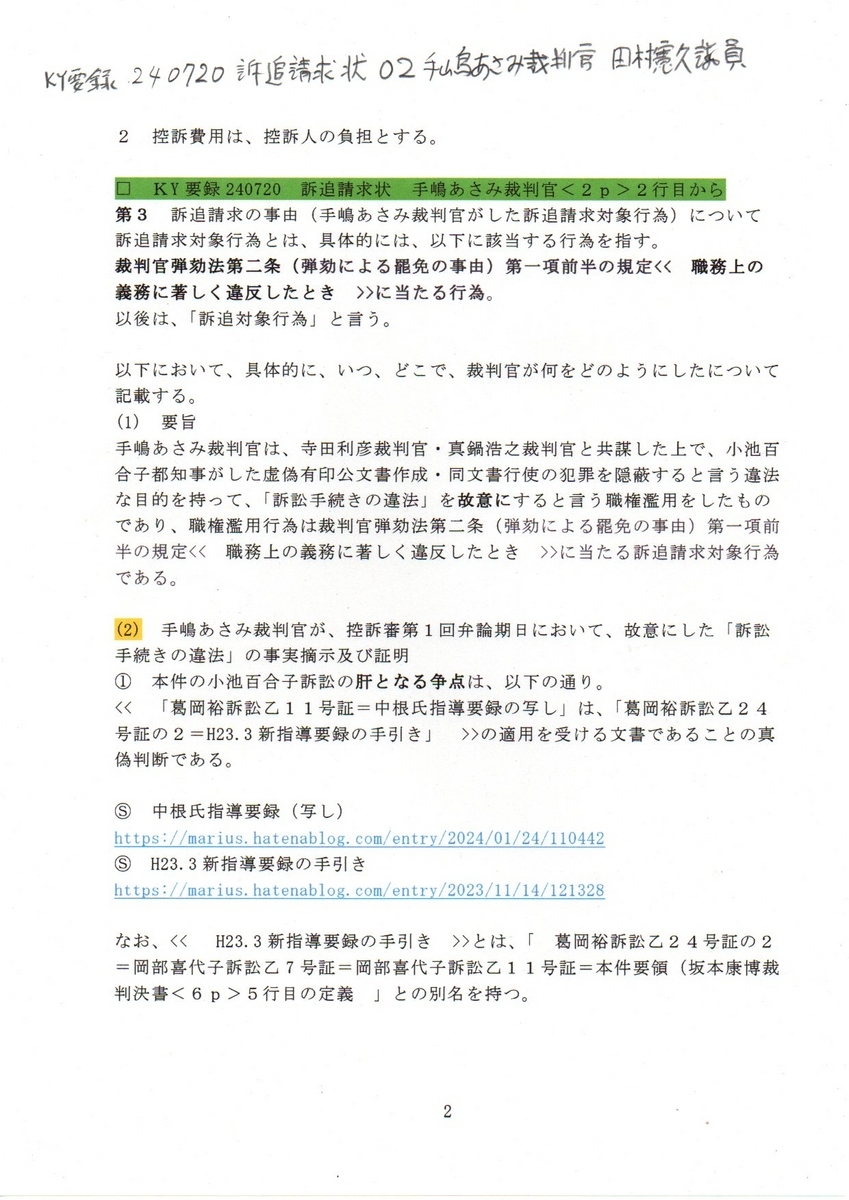 2KY要録 240720訴追請求状 02手塚あさみ裁判官