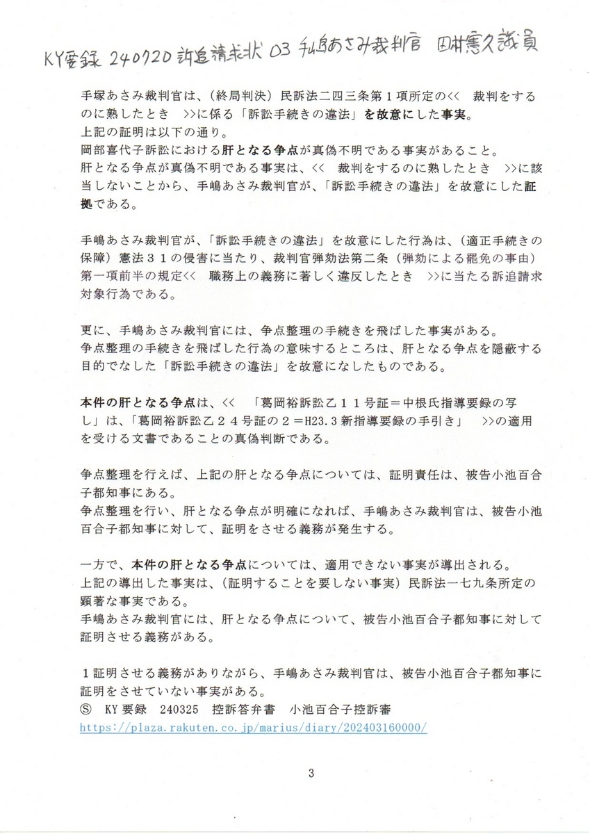 3KY要録 240720訴追請求状 03手塚あさみ裁判官
