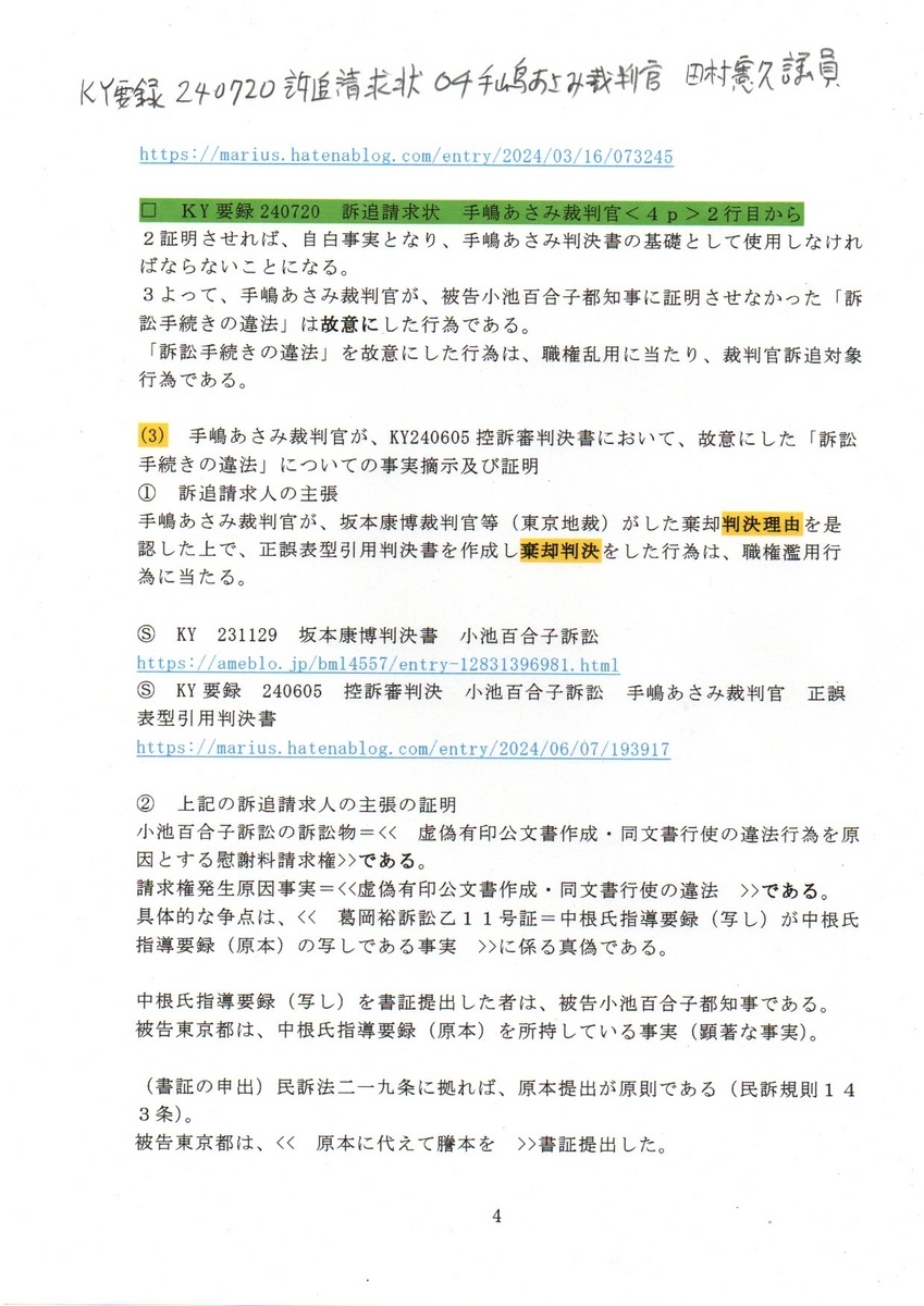 4KY要録 240720訴追請求状 04手塚あさみ裁判官