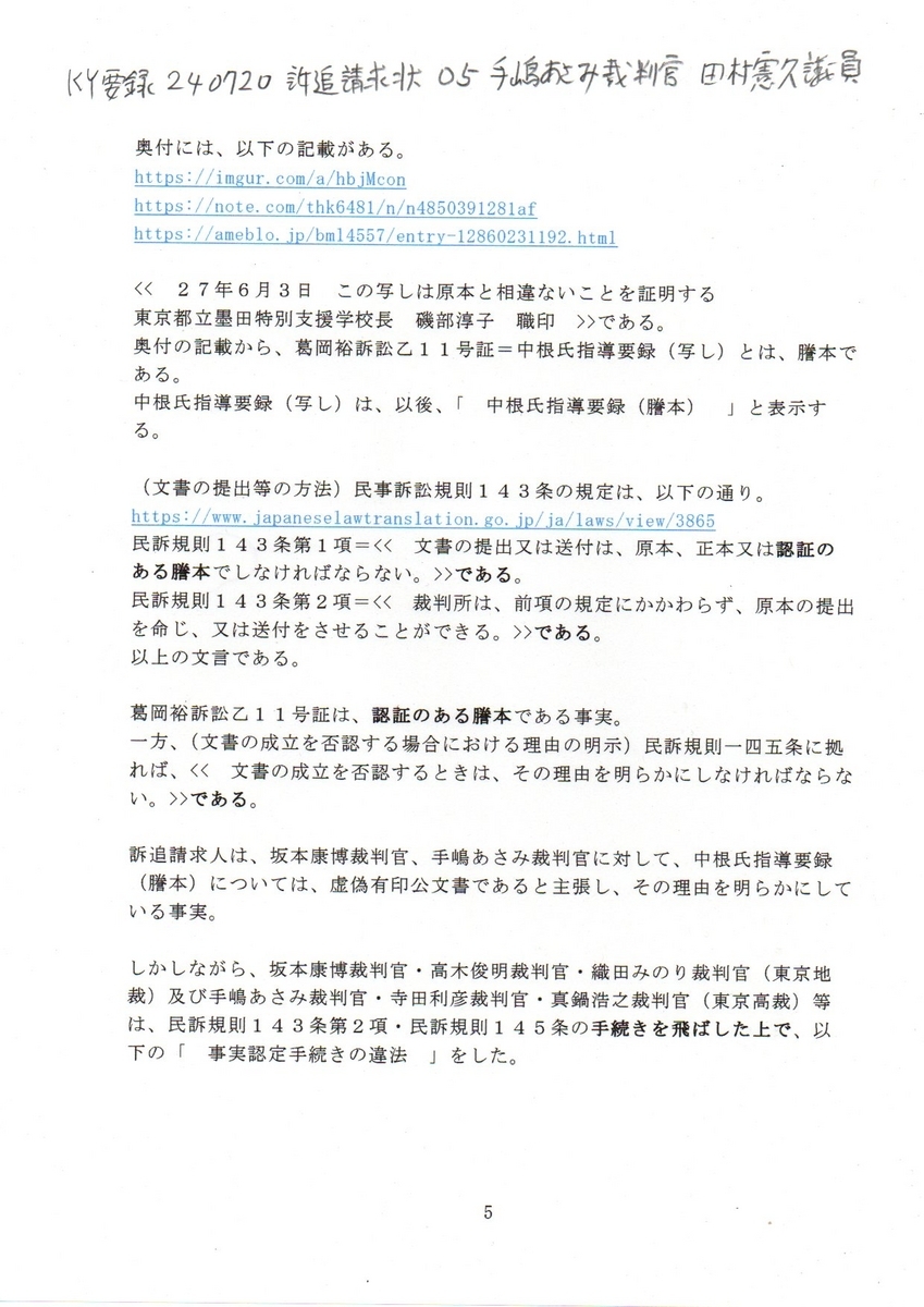 5KY要録 240720訴追請求状 05手塚あさみ裁判官