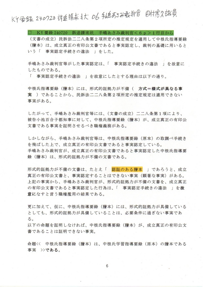 6KY要録 240720訴追請求状 06手塚あさみ裁判官