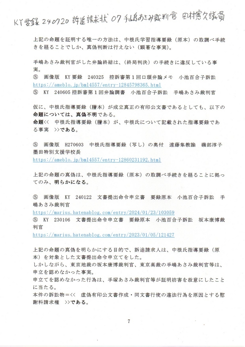 7KY要録 240720訴追請求状 07手塚あさみ裁判官
