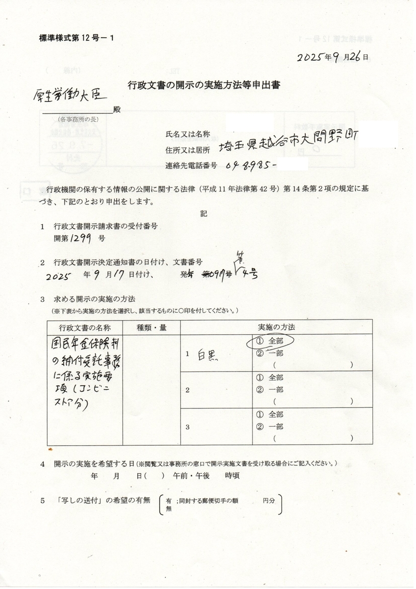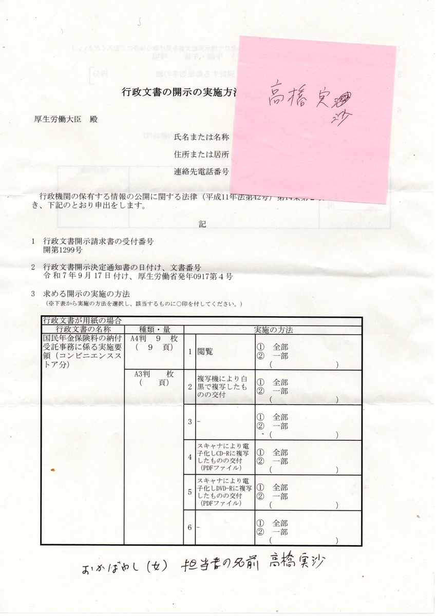 << 国民年金保険料の納付受託事務に係る実施要領(コンビニエンス分)が開示決定された件 >>