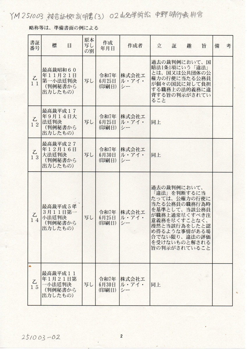 2 YM 251003 被告証拠説明書(3) 02山名学訴訟